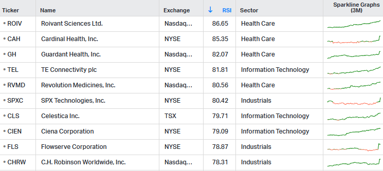 Week ending October 31, 2025 | Most Overbought Stocks, based on 14-Day RSI