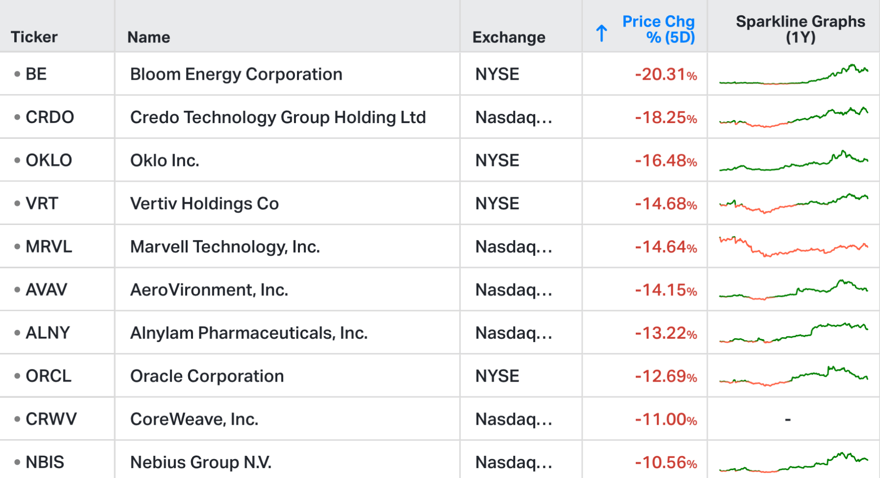 Top 10 Weekly Losers